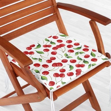 Realhomes Beyaz Zeminde Kiraz Desenli Dijital Baskılı Modern Sandalye Minderi