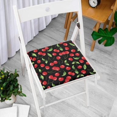 Realhomes Siyah Zeminde Kiraz Desenli Dijital Baskılı Modern Sandalye Minderi