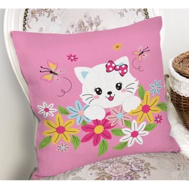 Çiçeklerin İçindeki Sevimli Kedi Desenli Modern Yastık Kırlent Kılıfı