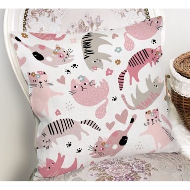 Sevimli Kedi Desenli Dijital Baskılı Modern Yastık Kırlent Kılıfı