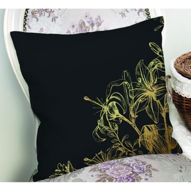 Koyu Zeminde Altın Rengi Çerçeveli Dijital Baskılı Dekoratif Yastık Kırlent Kılıfı