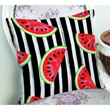 Çizgili Zemin Ve Karpuzlu Dijital Baskılı Dekoratif Yastık Kırlent Kılıfı