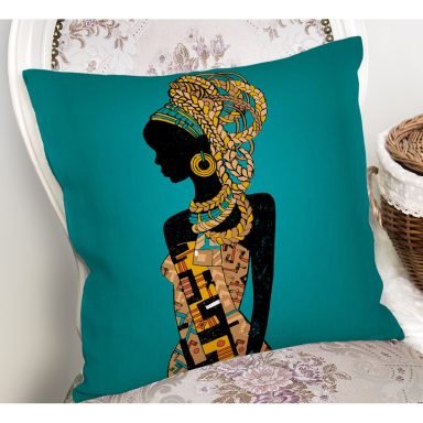 Afrika Kadın İllüstrasyon Motifli Dijital Baskılı Dekoratif Yastık Kırlent Kılıfı