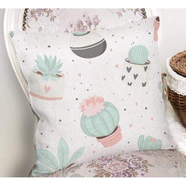 Realhomes Küçük Kaktüs Motifli Özel Tasarım Dijital Baskılı Modern Yastık Kırlent Kılıfı