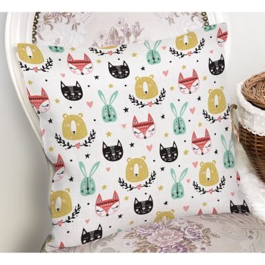 Realhomes Sevimli Minik Hayvanlar Çizimli Özel Tasarım Dijital Baskılı Modern Yastık Kırlent Kılıfı