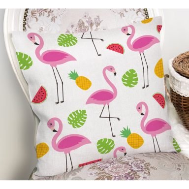 Realhomes Pembe Zeminli Flamingo Tasarımlı Dijital Baskılı Modern Yastık Kırlent Kılıfı