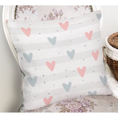 Realhomes Gri Zeminde Renkli Çiçek ve Kalp Tasarımlı Dijital Baskılı Modern Yastık Kırlent Kılıfı
