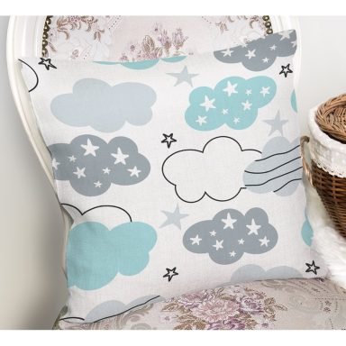 Realhomes Açık Mavi Bulut Motifli Özel Tasarım Dijital Baskılı Modern Yastık Kırlent Kılıfı
