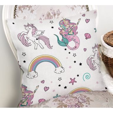 Realhomes Unicorn ve Deniz Kızı Tasarımlı Dijital Baskılı Modern Yastık Kırlent Kılıfı