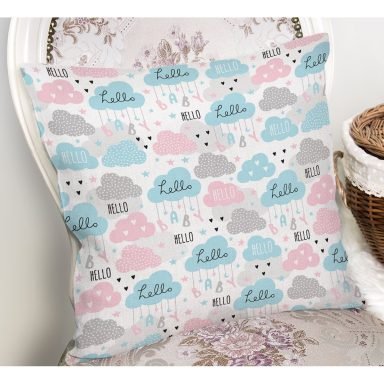 Realhomes Hello Baby Renkli Bulutlar Özel Tasarım Dijital Baskılı Modern Yastık Kırlent Kılıfı