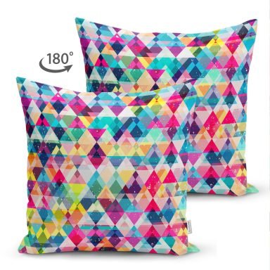 Özel Tasarım 3D Renkli Üçgenler Dijital Baskılı Süet Yastık Kırlent Kılıfı