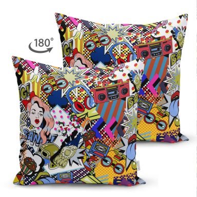 Modern Pop Art Tasarımlı Dijital Baskılı Modern Süet Yastık Kırlent Kılıfı