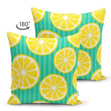 Yeşil Zeminde Limonlar Özel Tasarımlı Modern Süet Yastık Kırlent Kılıfı