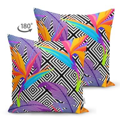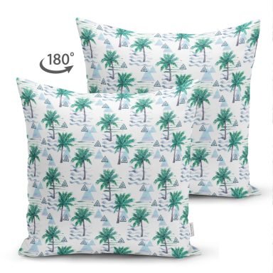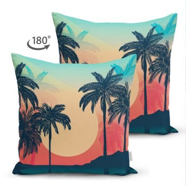 Özel Tasarım Palmiye Motifli Dijital Baskılı Süet Yastık Kırlent Kılıfı