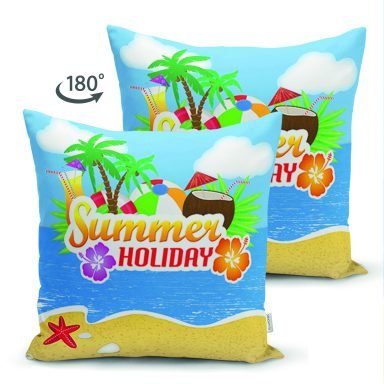 Summer Plaj Tasarımlı Dijital Baskılı Dekoratif Süet Yastık Kırlent Kılıfı