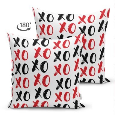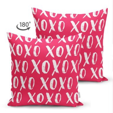 XO Harf Tasarımlı Dijital Baskılı Modern Süet Yastık Kırlent Kılıfı