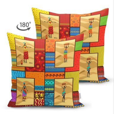 Mozaik African Desenli Dijital Baskılı Modern Süet Yastık Kırlent Kılıfı