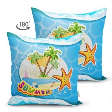 Sea Summer Dijital Baskılı Modern Özel Tasarım Süet Yastık Kırlent Kılıfı