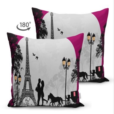 Eyfel Kulesi Tasarımlı Dijital Baskılı Dekoratif Süet Yastık Kırlent Kılıfı