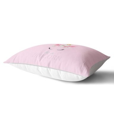 Pembe Zemin Be A Unicorn Yazılı Dijital Baskılı Modern Dikdörtgen Yastık Kırlent Kılıfı
