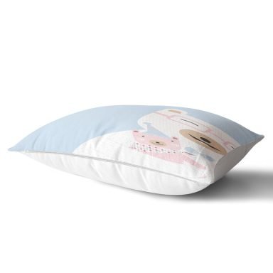 Mavi Çizgili Zemin Şapkalı Ayıcık Desenli Dijital Baskılı Modern Dikdörtgen Yastık Kırlent Kılıfı