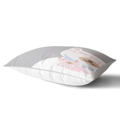 Gri Zeminde Sevimli Sirk Tavşanı Çocuk Odası Dikdörtgen Yastık Kırlent Kılıfı