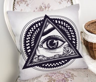 Özel Tasarım Kanatlı Üçüncü Göz Motifli Dijital Baskılı Kırlent Kılıfı