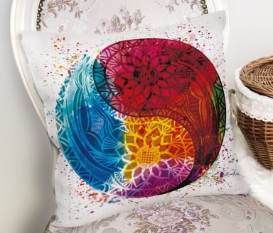 Renkli Uzak Doğu Denge İkonlu Dijital Baskılı Dekoratif Yastık Kırlent Kılıfı