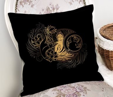 Uzak Doğu Gold Yoga Motifli Özel Tasarım Dijital Baskılı Yastık Kırlent Kılıfı