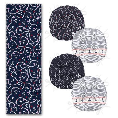 Lacivert Denizci Tasarımlı 4 Yuvarlak Pofidik Sandalye Minderi ve 1 Runner Seti