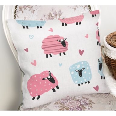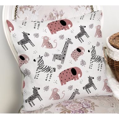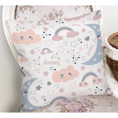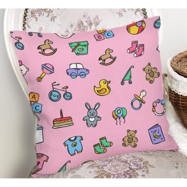 Pembe Zeminde Bebek Odası Temalı Dijital Baskılı Özel Tasarım Modern Yastık Kırlent Kılıfı