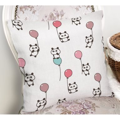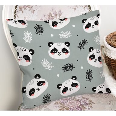 Pembe Zeminde Sevimli Panda Desenli Dijital Baskılı Özel Tasarım Modern Yastık Kırlent Kılıfı