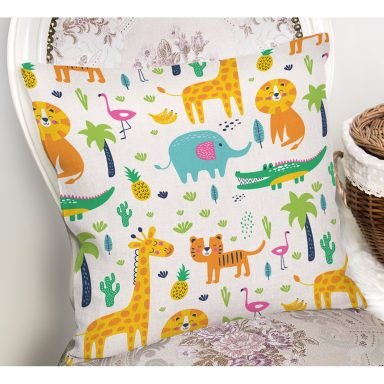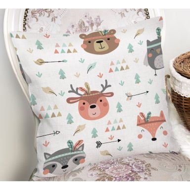 Sevimli Orman Hayvanları Temalı Dijital Baskılı Özel Tasarım Modern Yastık Kırlent Kılıfı