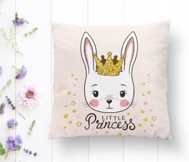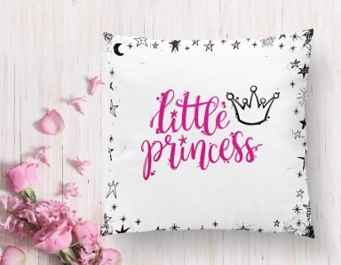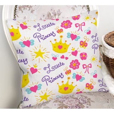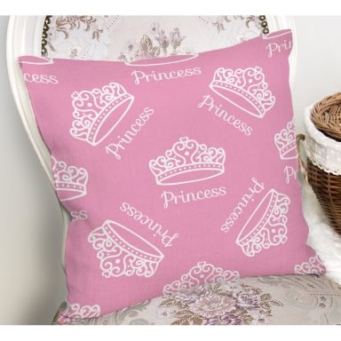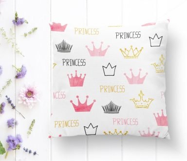 Pembe Zeminli Prıncess Yazılı Dijital Baskılı Kırlent Kılıfı