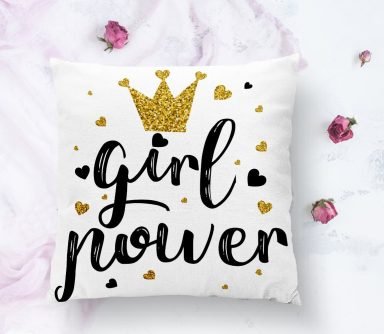 Gırl Power Yazı Desenli Dijital Baskılı Modern Yastık Kılıfı