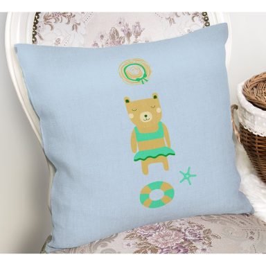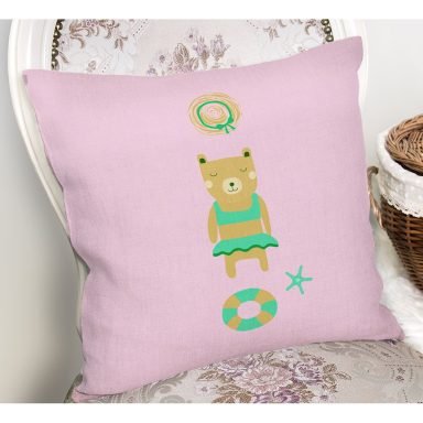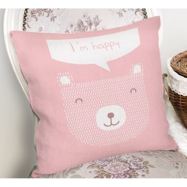 Pembe Zemin Uyuyan Ayıcık Desenli Özel Tasarımlı Dijital Baskılı Modern Yastık Kırlent Kılıfı
