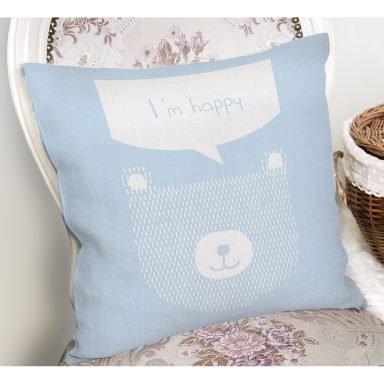 Mavi Zemin Balon Ve Zürafa Desenli Temalı Sevimli Ayıcık Çocuk Odası Yastık Kırlent Kılıfı