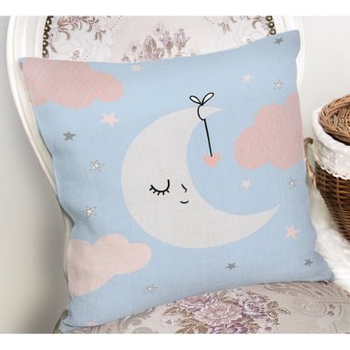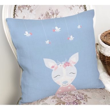 Mavi Zemin Uyuyan Geyik Desenli Özel Tasarımlı Dijital Baskılı Çocuk Odası Yastık Kırlent Kılıfı