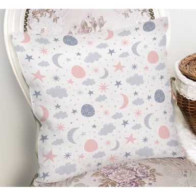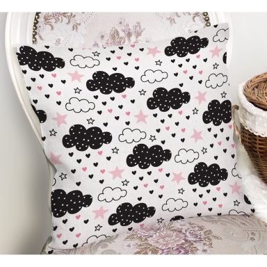Pembe Yıldız Ve Bulut Desenli Dijital Baskılı Özel Tasarım Modern Yastık Kırlent Kılıfı