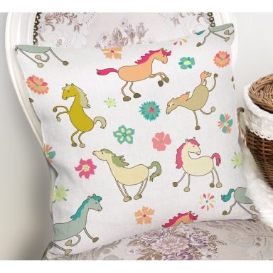 Rengarenk Sevimli At Desenli Dijital Baskılı Özel Tasarım Modern Yastık Kırlent Kılıfı