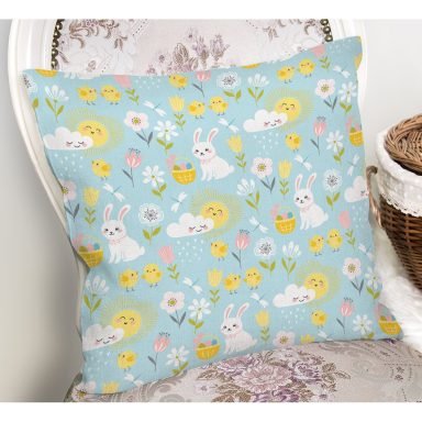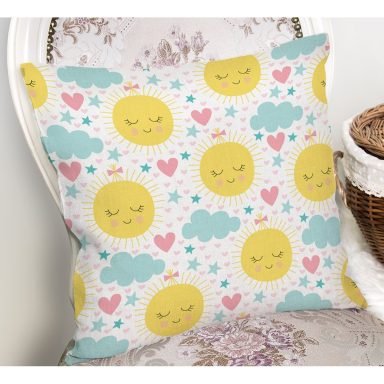Tavşan Bulut Ve Güneş Desenli Dijital Baskılı Özel Tasarım Modern Yastık Kırlent Kılıfı