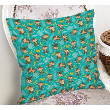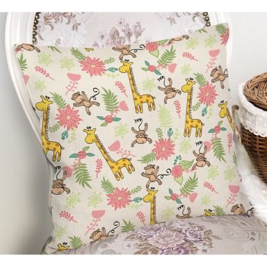 Orman Temalı Maymun Ve Zürafa Desenli Dijital Baskılı Özel Tasarım Modern Yastık Kırlent Kılıfı