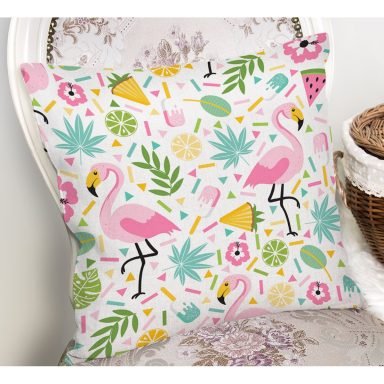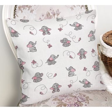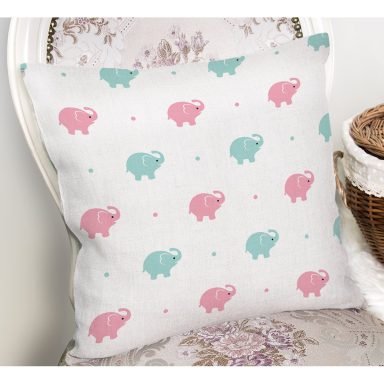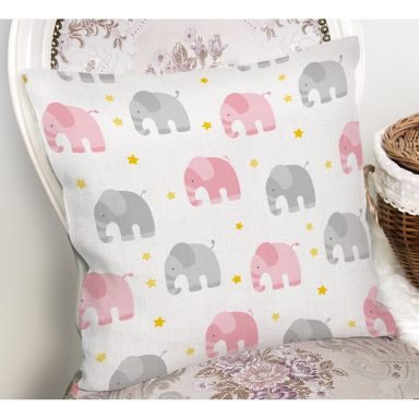 Fil Ve Pembe Kelebek Motifli Dijital Baskılı Özel Tasarım Modern Yastık Kırlent Kılıfı