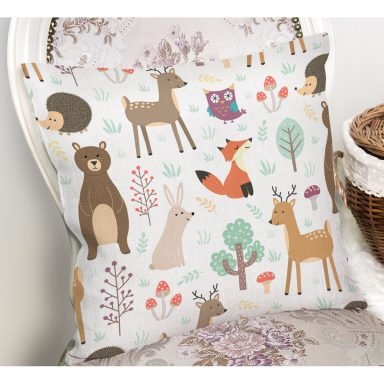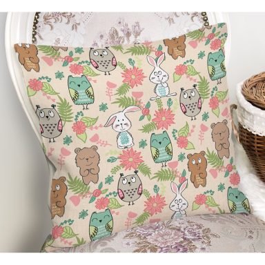 Sevimli Orman Hayvanları Desenli Dijital Baskılı Özel Tasarım Modern Yastık Kırlent Kılıfı
