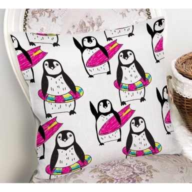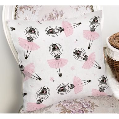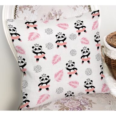 Pembe Balerin Panda Desenli Dijital Baskılı Özel Tasarım Modern Yastık Kırlent Kılıfı
