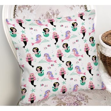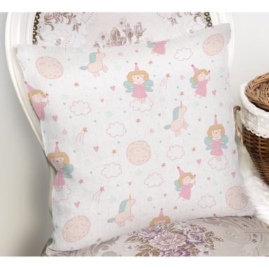 Pembe Peri Kızı Ve Unicorn Desenli Dijital Baskılı Özel Tasarım Modern Yastık Kırlent Kılıfı
