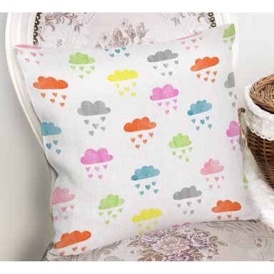 Sevimli Yağmur Bulutları Desenli Dijital Baskılı Özel Tasarım Modern Yastık Kırlent Kılıfı