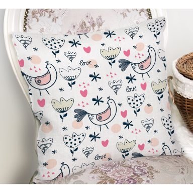 Pembe Zeminli Sevimli Kelebek Motifli Dijital Baskılı Özel Tasarım Modern Yastık Kırlent Kılıfı