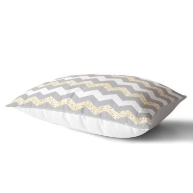 Realhomes Gri Altın Varaklı Çizgi Motifli Modern Dikdörtgen Yastık Kırlent Kılıfı