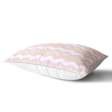 Realhomes Pembe Altın Varaklı Çizgi Motifli Modern Dikdörtgen Yastık Kırlent Kılıfı